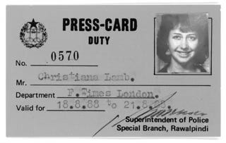 When Christina arrived for the interview, Bhutto had just announced her engagement to Asif Ali Zardari. “Her room was full of bouquets of flowers,” she says. “We got on well, and soon after, Bhutto returned to Pakistan to raise a movement for democracy.” Christina went back to working as a trainee reporter in Birmingham.